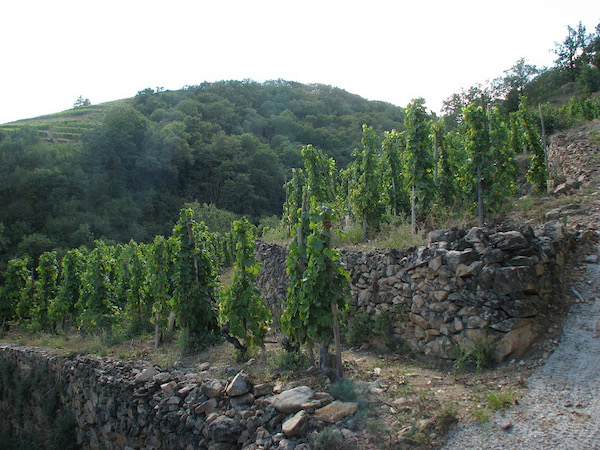 When André Perret was growing up in Chavanay, in the northern Rhône Valley, most of the land there was planted to orchards, including the bulk of the family’s own small estate. Their roots were in Burgundy, though, where André’s forefathers owned and worked vineyards in Chassagne-Montrachet until World War II forced them to relocate. As a young man André studied biology and took a job as a cancer researcher, but he felt cooped up in the laboratory and dreamt of a life outdoors. In 1982, after completing a degree in viticulture and enology, he returned to his hometown and started out with a few small rows of vines that had belonged to his uncle. At that time there were just two other vignerons in Chavanay and the region was in decline, but he believed profoundly in the value of the local terroirs and worked hard to valorize the area, becoming president of the department’s association of young agriculturalists and establishing programs that would encourage people to settle down and plant vineyards there. He also worked tirelessly to develop his own estate, expanding production by renting vineyards and replanting the family lands to vines. Today he is proud to be surrounded by dynamic, passionate young vignerons and to see that most of his neighbors’ children are eager to take over the family estates as they grow up.