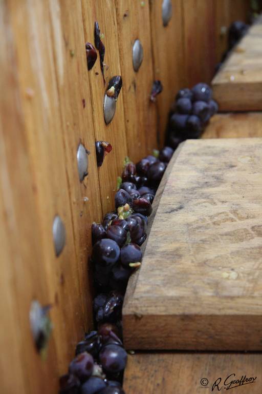 Harvested and sorted by hand. Traditional Coquard wine press.