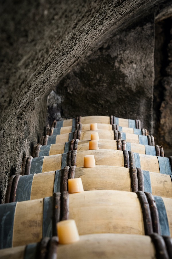 The grapes are chilled before whole-bunch pressing. This is a crucial step which requires continued oversight and a lot of precision. A new tank room was installed before the 2012 vintage, with small stainless-steel, temperature-controlled tanks. This has given the team the chance to be able to vinify each different selection separately and with precision. The juice settles for 24 to 48 hours before wild fermentation, which finishes in barrel, where the wine always undergoes malolactic conversion. It ages for approximately 12 months in barrel, sometimes more, before the wine rests another six to eight months in stainless still vats. In a departure from the previous regime, only one new 300-litre barrel is added to the cellar each year, which equates to roughly 20% new wood in the blend. The rest of the wine ages in second- to fourth-use wood.