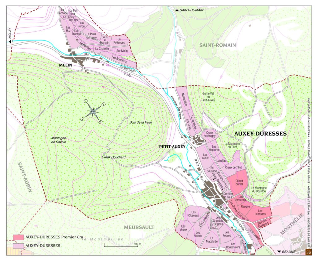 Olivier Leflaive is based in Puligny-Montrachet. This wine comes from Auxey-Duresses a village surrounded by Saint-Aubin, Saint-Romain and Meursault.