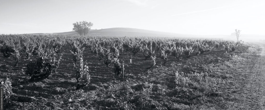Tempranillo’s local name is Tinto Fino and is also sometimes called Tinto del Pais. It is not Tempranillo by another name, but a distinct familial strain, as is Tinta de Toro, the version of ‘Tempranillo’ native to Toro, west along the Ribera of Rio Douro. These familial distinctions are more significant than clonal variations, which occur at a local level. So, sniffing around the old plantings, and talking to the old-timers of Ribera during the early 90s, Peter did his own work in identifying Tinto Fino, distinguishing it from ‘Tempranillo’, and identifying several key clonal variations within the local Tinto Fino. Likewise he combed the various sub-regions looking at different soil and micro-climates and eventually located what he thought was the ideal combination of site, clonal selection of Tinto Fino and old bush vines pruned ‘en vaso’. Three ancient plots near to one another in the ‘La Horra’ zone between Roa and Aranda del Duero in the central part of Ribera del Duero were acquired and became the basis of Pingus (one nowadays is the base of Flor de Pingus). Similar plots constitute Flor de Pingus, and more lately the regional project PSI. Altitude is 800-850 metres.