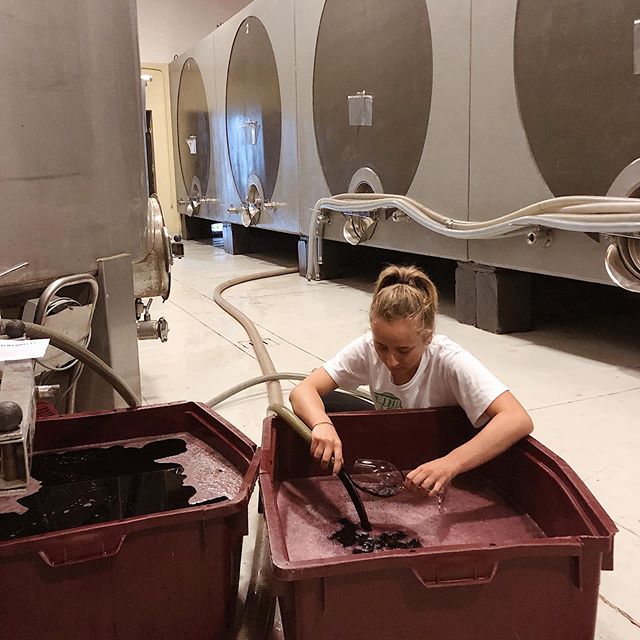 Below from top left clockwise: Harvest at Vigna Rionda, A bunch of Nebbiolo from Vigna Rionda, Unloading fruit, Aerative Pumpover of Rocche Rivera, Francesco Versio tasting a Botti, Rack, aeration and return of maturing Barolo in Botti.