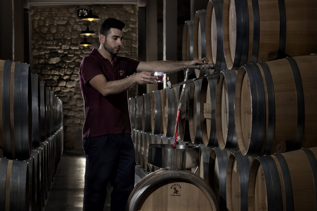 After vinification in the new ultra modern vinification plant near Haro, aging is in traditional Bordeaux casks, all made from American oak. Racking is by hand every 6 months with 8 teams working full time racking the 51,000 casks. There is no filtration prior to bottling and further long aging in bottle before release.