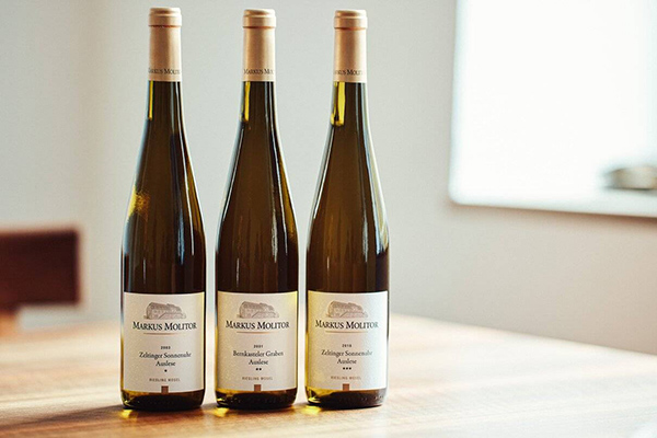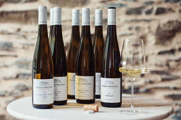 Molitor avoids using the traditional categories to indicate ‘dryness’ in Riesling. He claims his “focus is on the harmonious taste and balance of the wine which cannot be determined solely by analysis of residual sugar content and total acidity”. Instead, the colour of the capsule indicates the style and respective flavour profile of his Rieslings: white represents classically fermented wines; green is feinherb, the historical medium-dry style of Mosel wines; gold indicates richer, nobly sweet wines, including berry-selection styles Beerenauslese and Trockenbeerenauslese.