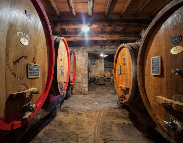 Situated next to the winemaking cellar is the ageing cellar, housed in an old building, three-quarters underground, the ideal environment for wine ageing. The wine is aged exclusively in large oak barrels coming from Austria and Burgundy.