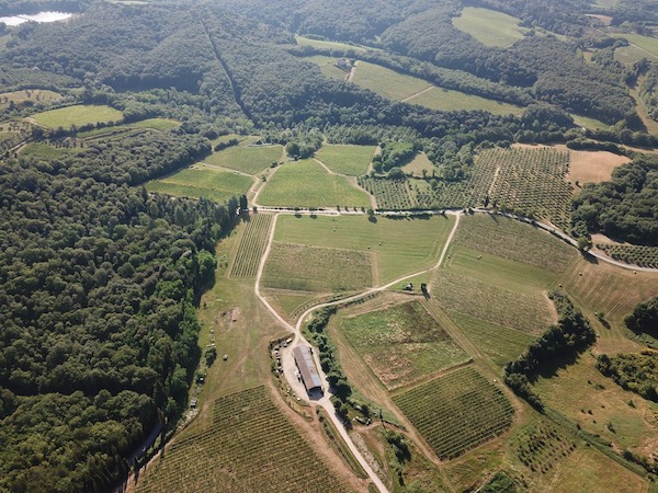 The estate is comprised of 160 hectares, situated at an average altitude of 270 meters above sea level. 31 hectares are planted in vineyards, 11 in olive groves, 40 in woods, 78 in cultivated and grazing lands. The terrain is composed of various soils rich in different mineral components, sand, clay, lime, alkali, argil and calcium. The microclimate is characterized by considerable day and night temperature differences and often heat during harvest time. All the vineyards enjoy exceptionally favourable exposure. During the months of July and August, we thin-out the natural growth of grape bunches by 30-50%, a practice called “green harvesting ,” which encourages the full and perfect maturation of our grapes.