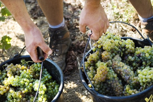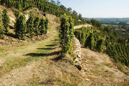 Yves Cuilleron’s vineyard holdings are spread through the Northern appelations (regions) of the Rhône Valley between Valence and Lyon. These are the home of whites made from Viognier, Marsanne, Roussane and blends of the three, with reds made from Shiraz and blends of Shiraz and Viognier from Côte Rôtie. The sites on the banks of the Rhône River are calf snappingly steep. Pulley systems and vineryard sized monorails often used to haul fruit and earth up the hills. In many vineyards, terraces lined by stone walls as tall as a man are used to hold the mountains back!