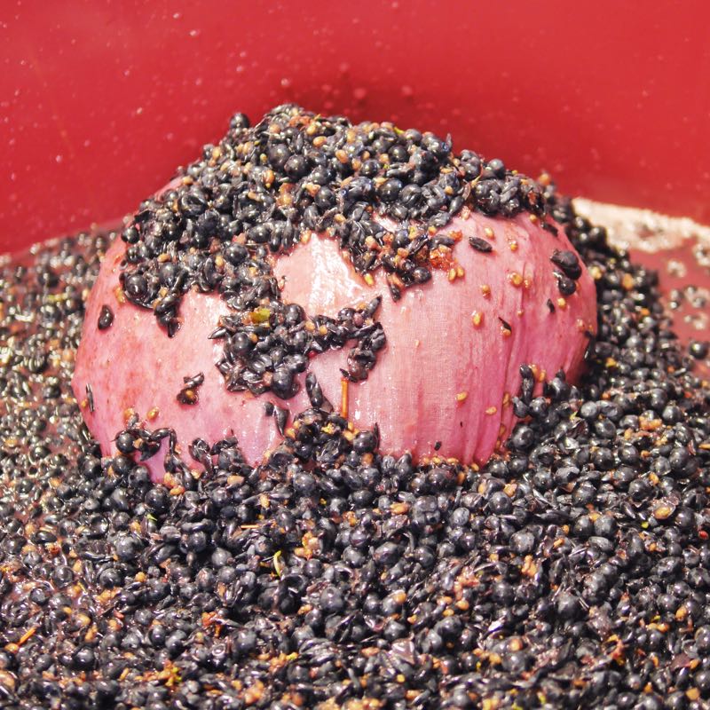 Down the guts of the Crusher as the Cabernet makes it’s way through! The blurry paddles beat the berries off the bunches & feed the stalks out the end for me to collect for tea bag production later! All will be revealed!