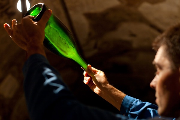 Riddling or Remuage in French is the process of moving all of the dead yeast in a bottle fermented sparkling wine from the side of the bottle into the very neck of the bottle so it can then be removed through the process of disgorging.